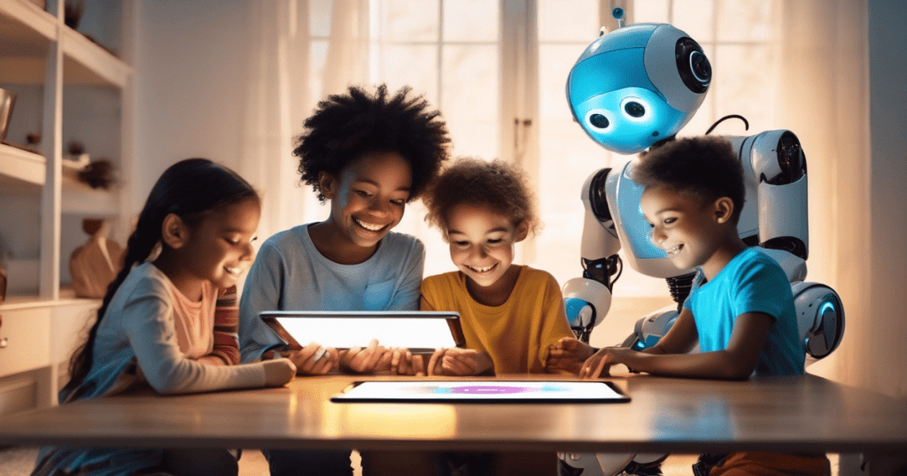 AI powers smart toys, educational apps, and voice assistants that children use. It can answer questions and assist with homework to make learning more engaging and interactive.